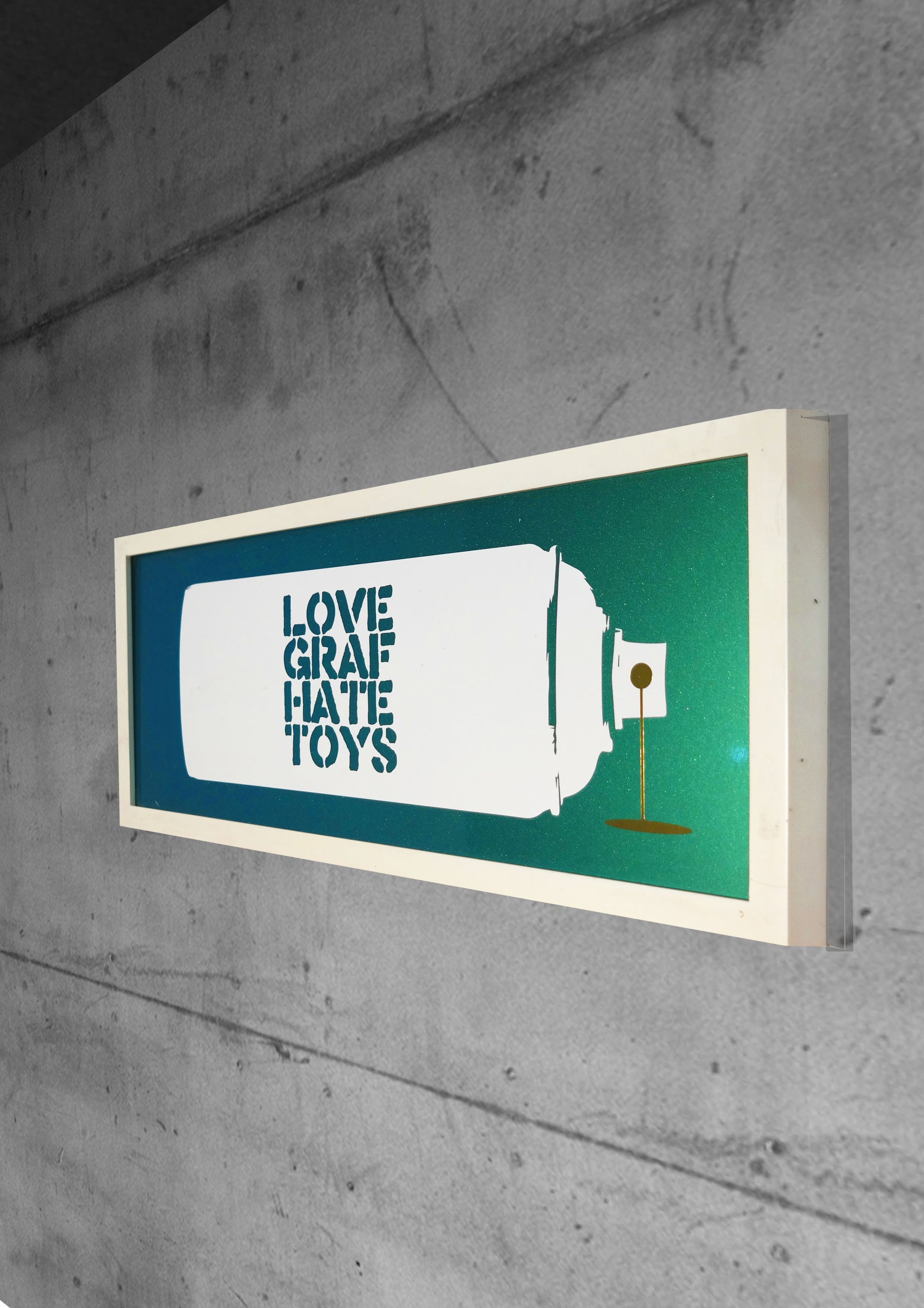 Love graffiti? Add some colour to your pad without risking eviction with our LIMITED EDITION 'Love Graf Hate Toys' White Chrome Print by Art Jaz!